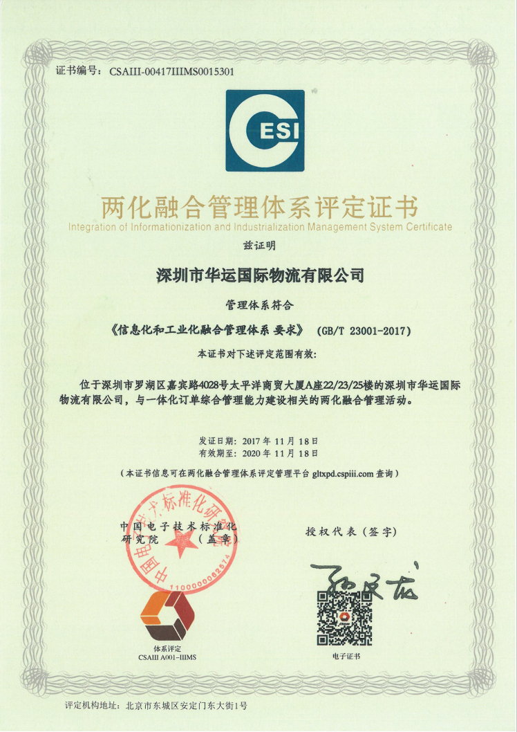 深圳市華運(yùn)國際物流有限公司成立于2001年7月,注冊資金6100萬元,公司現(xiàn)有員工1000余人。公司經(jīng)過二十多年的努力,現(xiàn)已成為一個(gè)實(shí)力雄厚的 綜合物流服務(wù)供應(yīng)商、國家高新技術(shù)企業(yè)、國家電子商務(wù)示范企業(yè)、深圳市專精特新中小企業(yè)和深圳市重點(diǎn)物流企業(yè),正朝著“做領(lǐng)先的一體化訂單管 理服務(wù)型綜合物流企業(yè)”的方向沉穩(wěn)邁進(jìn)。