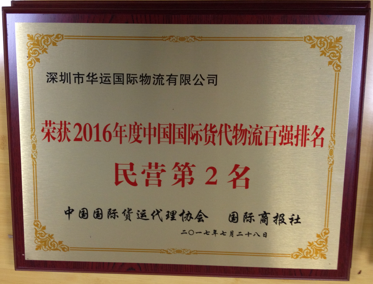 2016年中國國際貨代物流百強(qiáng)排名-民營第二名