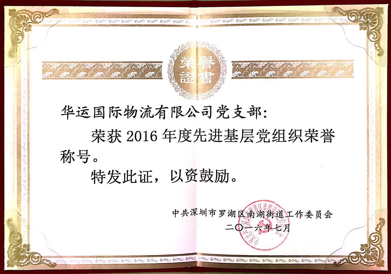 2016年度先進(jìn)基層黨組織榮譽(yù)稱號