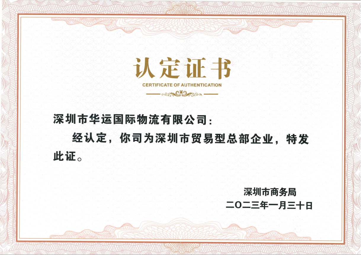 深圳市貿(mào)易型總部企業(yè)證書