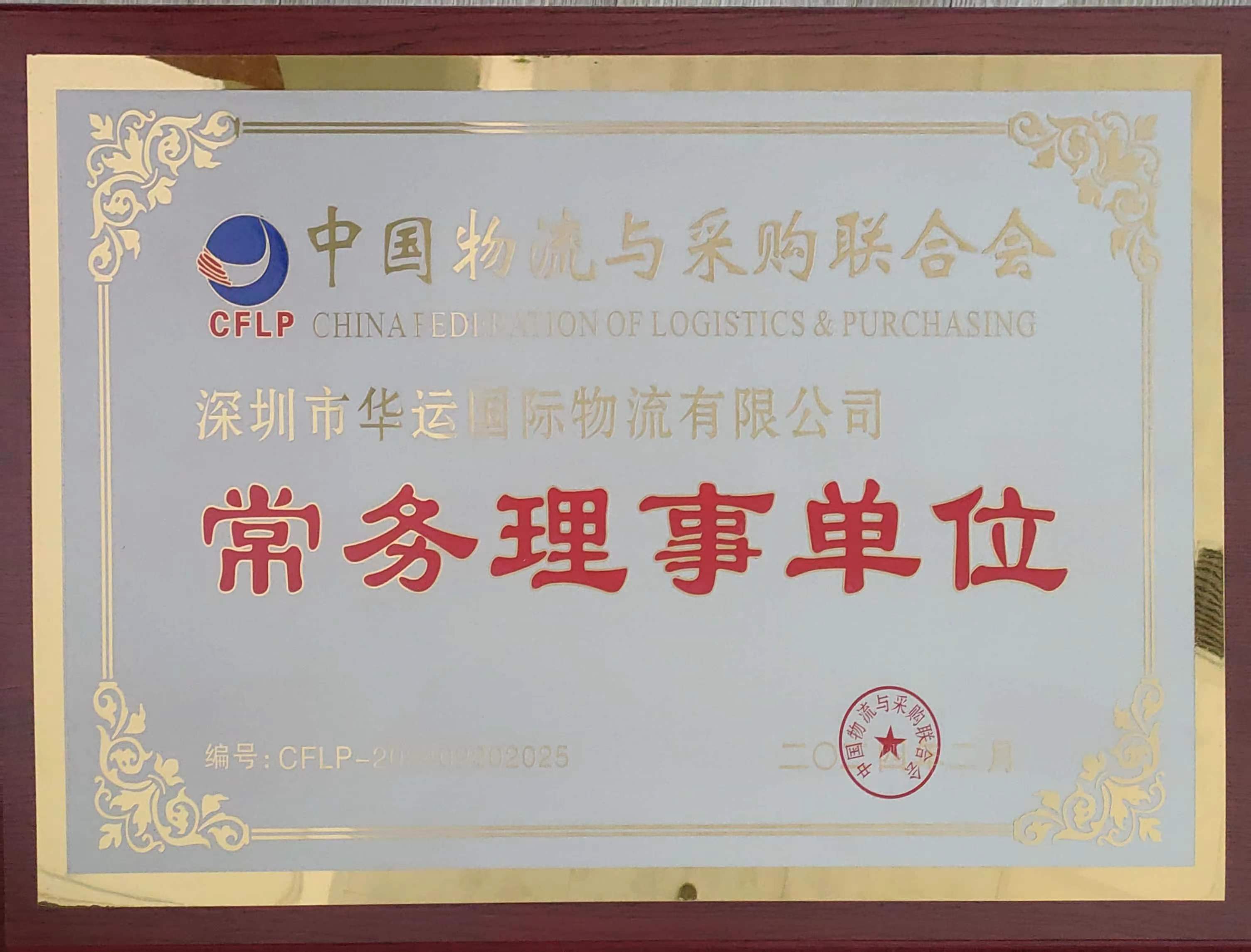 中國物流與采購聯(lián)合會理事牌匾