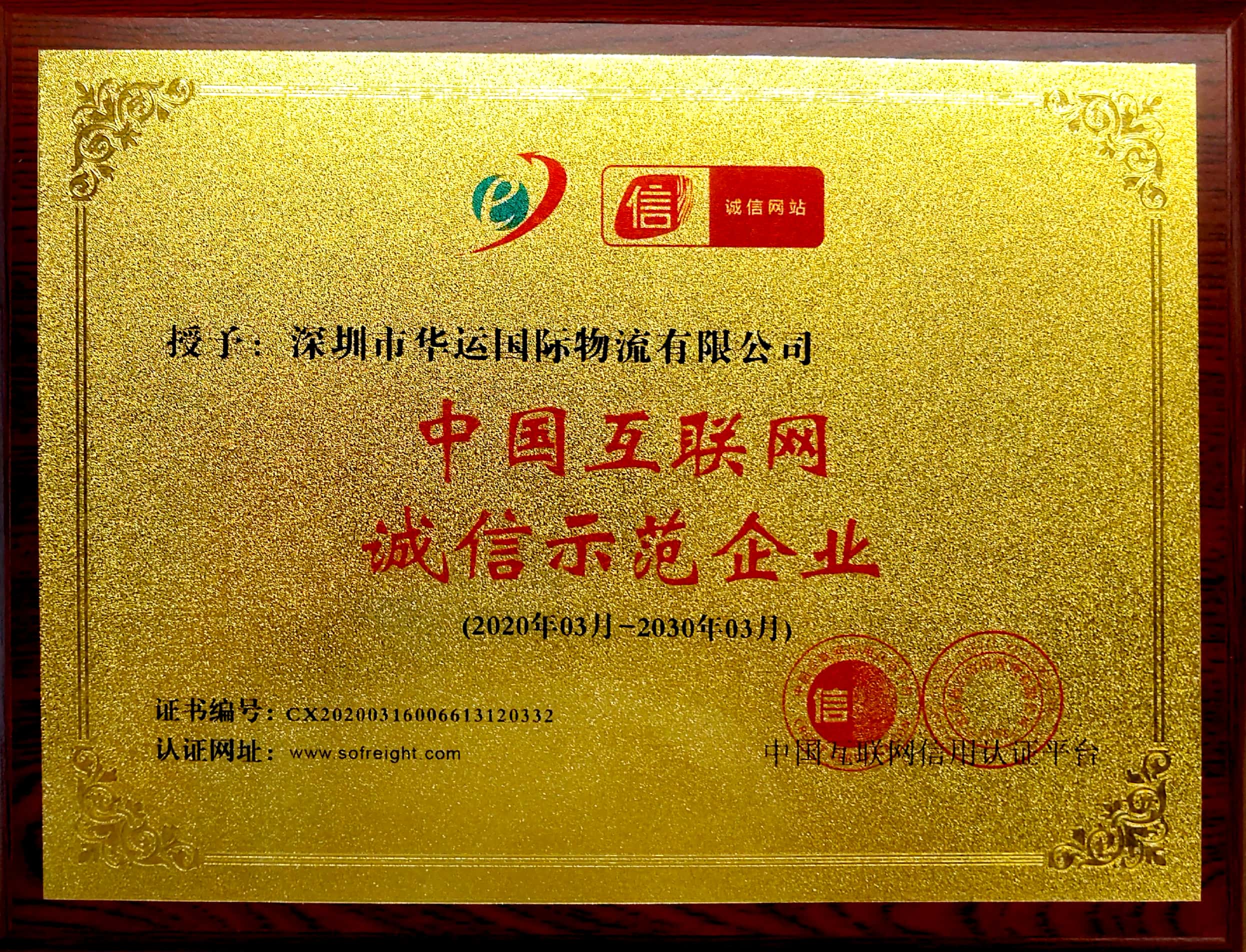 中國互聯(lián)網(wǎng)誠信示范企業(yè)